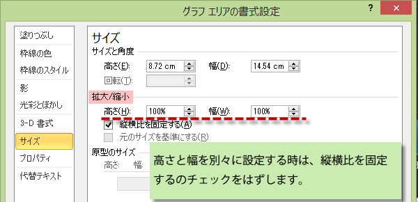 グラフのサイズを数値できっちりと指定することもできます。