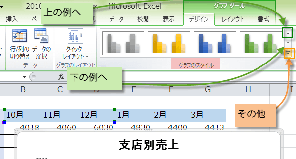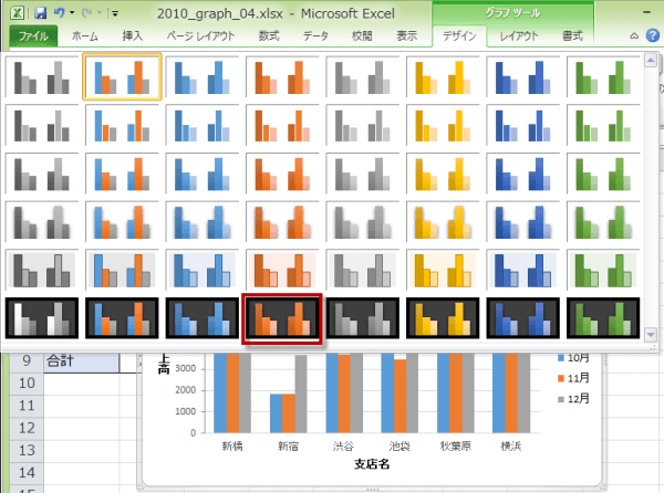 用意されたデザインを利用してグラフのデザインを変更するには、