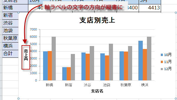 軸ラベルの文字列の方向を変更する方法も紹介します。