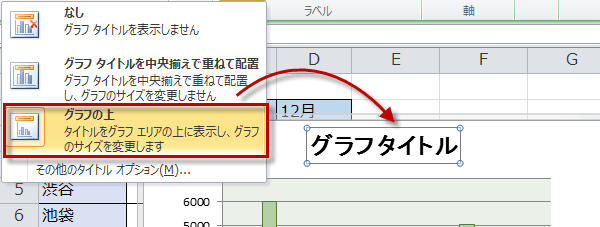 グラフタイトルでグラフの上を選択すると、タイトルはグラフエリアの上に表示します。