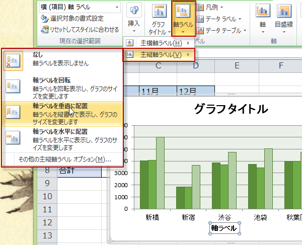 縦軸ラベル横軸ラベルの追加:Excel2010