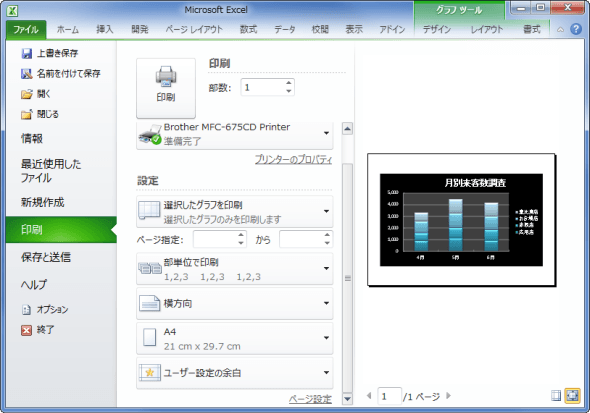 印刷枚数、用紙のサイズ、印刷方向などの設定が簡単にできるようになっています。また、設定右側に印刷プレビューが表示されています。