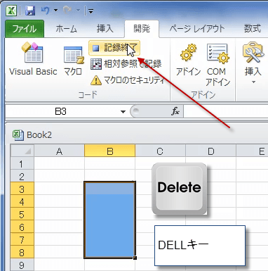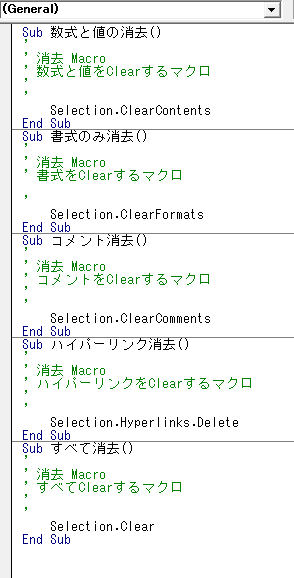 一連の消去マクロを個人用マクロブックに記録したところです。