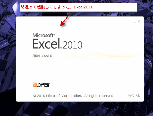 Excel2010を、誤って起動