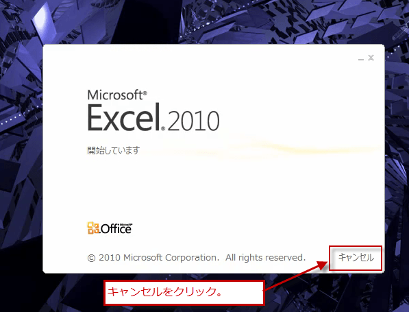 起動画面中に終了できるキャンセル機能は、Office2010の各ソフトに設けられています。