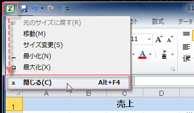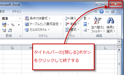 タイトルバーの[閉じる]ボタンをクリックしてアクティブなブックを終了することができます。