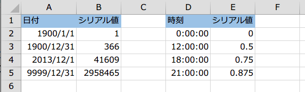 Excelでは、日付や時刻をシリアル値という数値で管理しています。