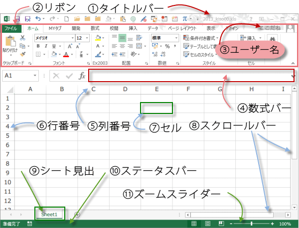 Excel2013使い方画面構成について