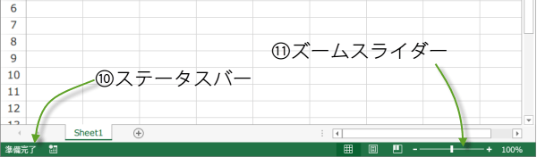 3つ目は、画面の下にある現在の作業状態を表示する部分。ステータスバーです。