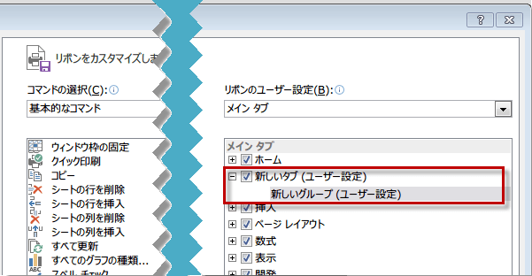 Excel 2013 オリジナルの新しいタブを作るには