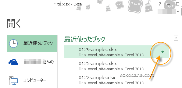クリックしてONにすると、そのブックは、最近使ったブックの一覧に固定表示されるようになります。