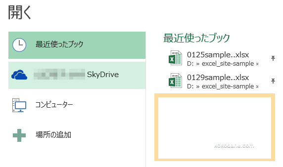 Backstage ビューで開くを選択すると、右側に最近使用したファイルの一覧が表示されます。 ファイル名をクリックするとそのファイルが開きます。