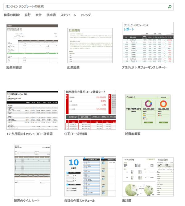 需要の多いテンプレートは、候補としてサムネイル画像のリンクが表示されています。