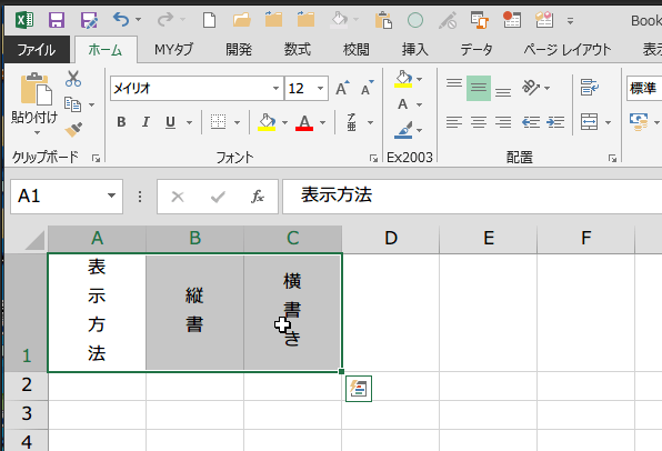 Excel 2013で横書きの文字列を縦書きにする