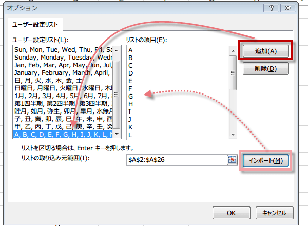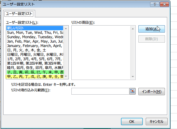 ユーザー設定リストは、Excelバージョン:201920162013