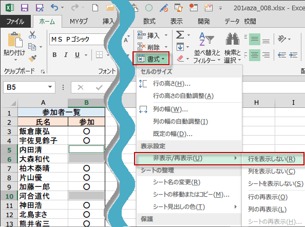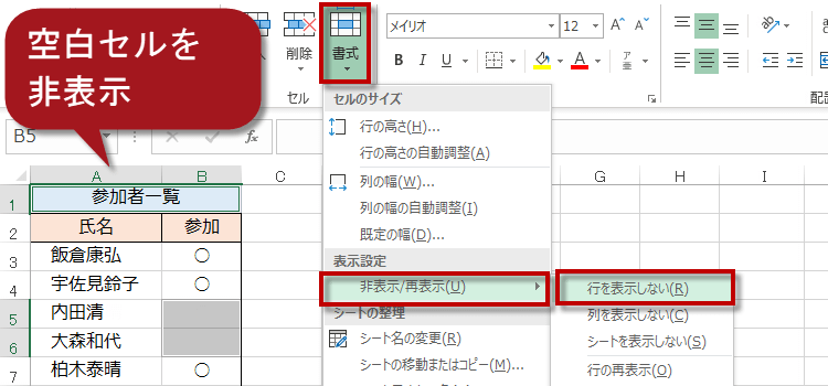 空白セルのある行だけ削除ではなく、非表示にする方法