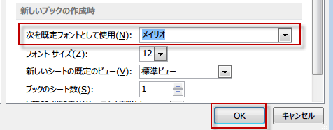 今回は、規定フォントをメイリオに、フォントサイズを12、シート数はデフォルトの1という設定に変更しました。