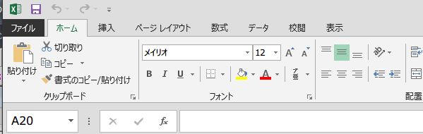 リボンの右側に現在のタブが表示されています。