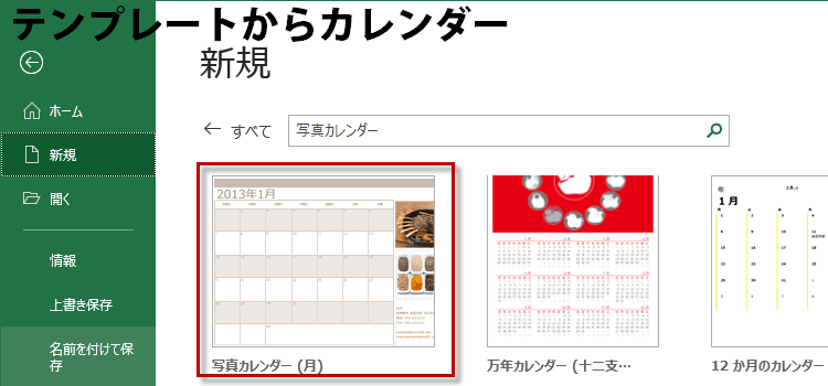 2013になって、「テンプレートを探す」手間が簡単になったので、テンプレートでカレンダーを作成してみることにしました。