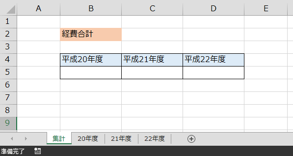 支店別や、年度別、月別など複数の同タイプのシートがある場合、まとめの集計シートを作る必要があります。