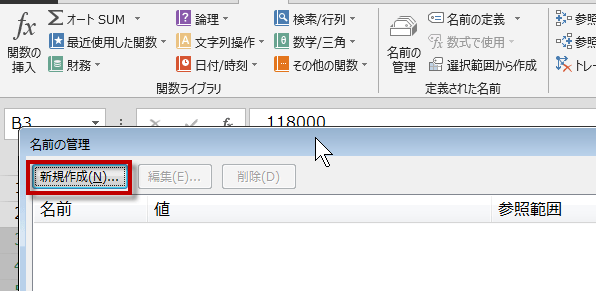 名前の管理ダイアログボックスが開きます。