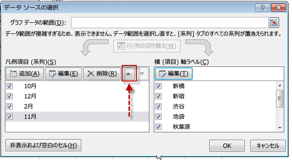 カラーリファランスが表示されない時のデータ範囲の追加には、データソースの選択ダイアログ方法があります。