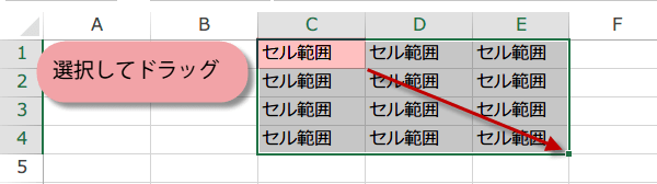 選択範囲の左上隅のセルをクリックし、右下隅のセルまでドラッグします。