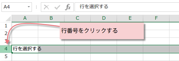 行番号または列番号をクリックします。行を選択したいときは行番号をクリックします。