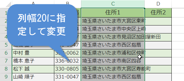 好みの幅に列幅を変更するマクロ 変数を宣言する