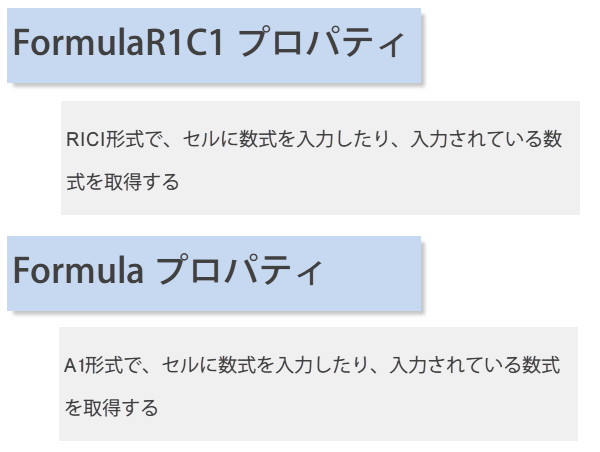 Formulaプロパティは「A1形式」でセル番地を指定するのに対して、
