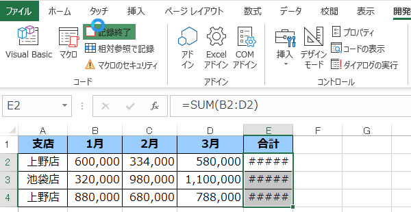今回は、選択範囲に合計入力するマクロをマクロの記録から作成してみましょう。
