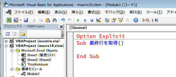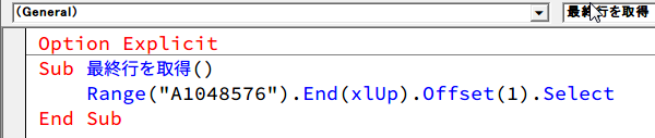 新規に入力する行を求める(最終行を選択する)マクロ