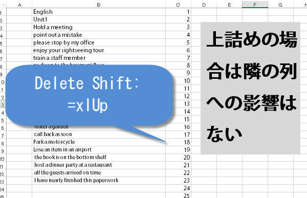 End Sub結果は下図のように隣のD列に入力していた数値が削除されて飛び飛びになっています。
