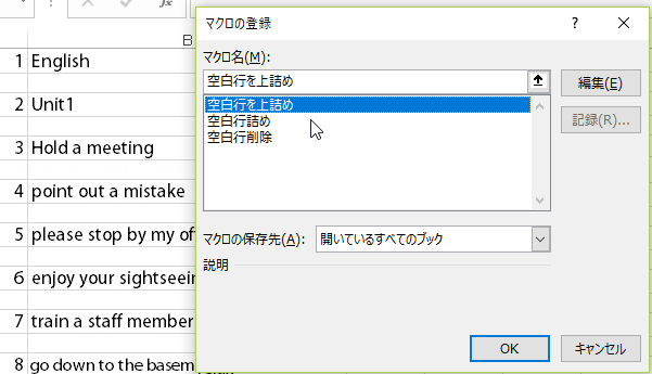 マクロ講座21回の続きです。空白行を削除するマクロを作成したので、コードを確認後、そのマクロをボタンにします。