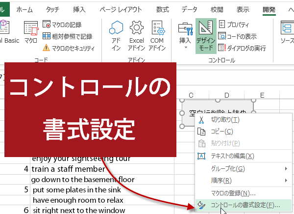 前頁(マクロ講座21回)で空白行を削除するマクロを作成したので、コードを確認後、そのマクロをボタンにしましょう。