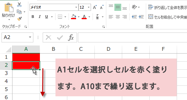 はじめに、予備知識としてセルを赤く塗るマクロの記録をしてみましょう。
