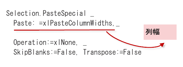 形式を選択して貼り付けダイアログにあったさまざまな設定項目も、一緒に含まれていますので、コードが長くなっています。