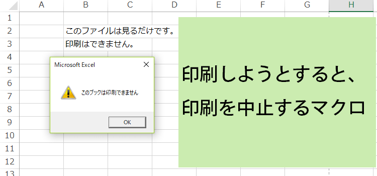 今回の3行マクロは、印刷をさせないようにするマクロを紹介します。