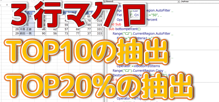 (サンプルファイルは、こちらです。 AutoFilter(オートフィルタ)で上位・下位のデータを抽出、時短激うまExcelの3行マクロ~すぐに使えるミニマクロ47回サンプル)