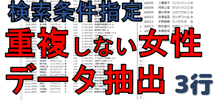 動画版「Excelの3行マクロ」です。 前回は売り上げリストから 重複しない顧客名を抽出するというマクロをアドバンストフィルターを使って 作成しました。 今回は復習も兼ねて、前回使用しなかったAdvancedFilter の引数で検索条件範囲CriteriaRangeを指定します。