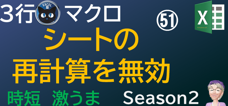 動画版「Excelの3行マクロ」です。 エクセルの計算方法を手動にしたり、戻したりするマクロと、特定シートだけの再計算機能を無効にするマクロ、また再計算機能を自動に戻すマクロを紹介します。 (サンプルファイルは、こちらです。 シートの再計算機能を無効にする、時短激うまExcelの3行マクロ~すぐに使えるミニマクロ51回サンプル)