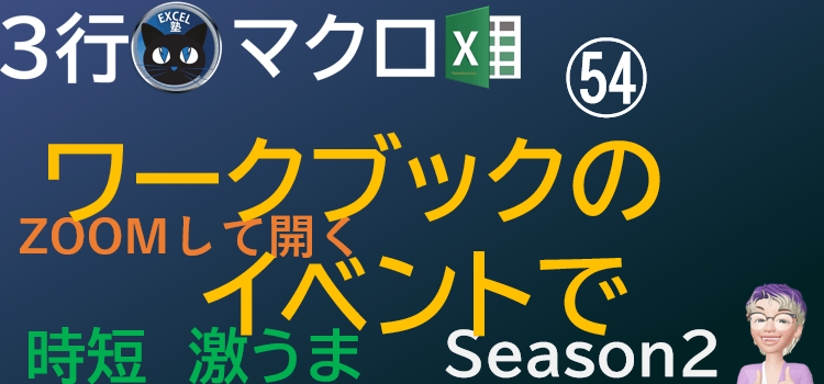 イベントマクロPart2、常にzoomした状態でブックを開く、時短激うまExcelの3行マクロ~すぐに使えるミニマクロ54回