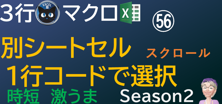 (サンプルファイルは、こちらです。 他のシートを選択してスクロール、時短激うまExcelの3行マクロ~すぐに使えるミニマクロ56回サンプル)
