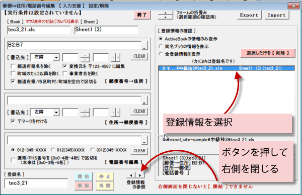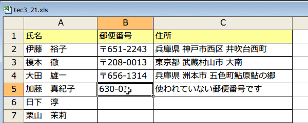 補足:この郵便番号入力支援の設定は、一度ファイルを閉じると無効になります。