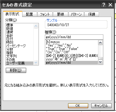 1965/10/27 と入力して、S40(40)/10/27と表示させています。