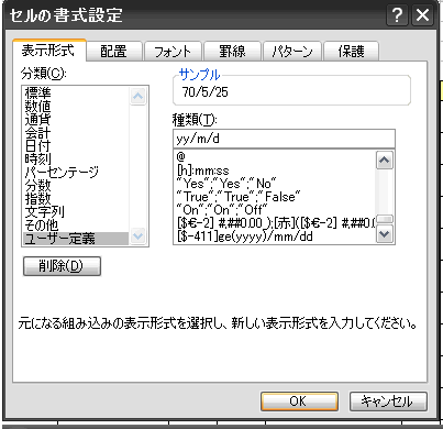 こんどは、1970/5/25と入力して、70/5/25と表示させたいとき、
