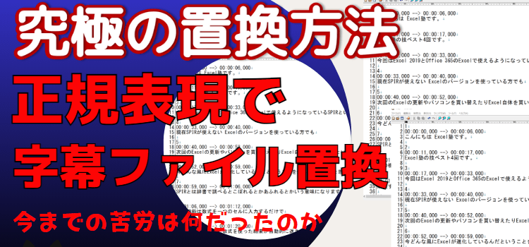【VBAで正規表現】テキストや字幕の文字列を正規表現で修正、正規表現で手作業の100倍以上速い、マクロ中級151回